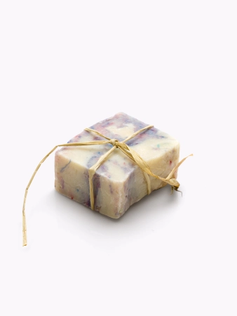 Os sabonetes têm uma base de glicerina 100% vegan com adição de azeite virgem macerados de plantas secas ou frescas o que lhe confere aroma, tais como: alecrim, calêndula, alfazema. São por vezes reforçados com essências.